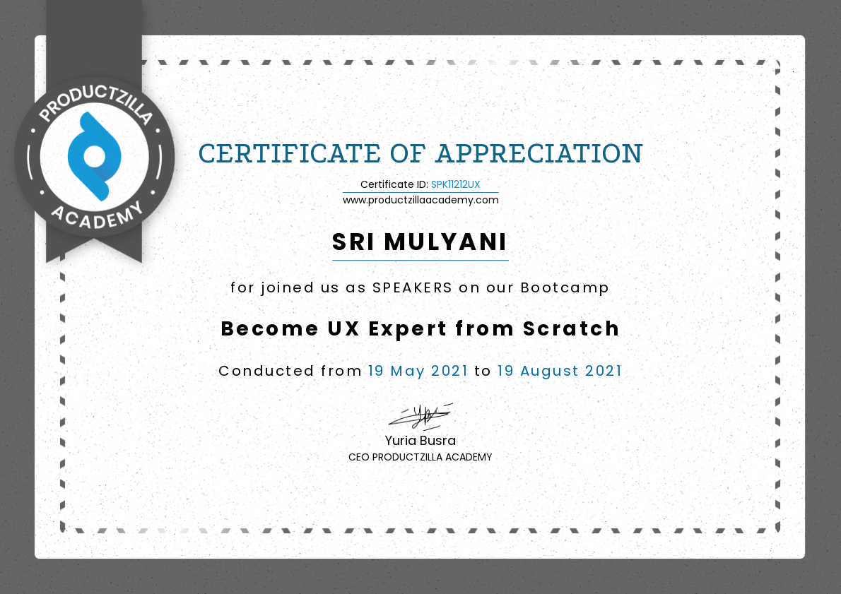 Sertifikat SPEAKERS: Become UX Expert from Scratch